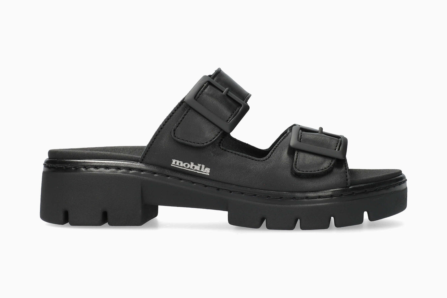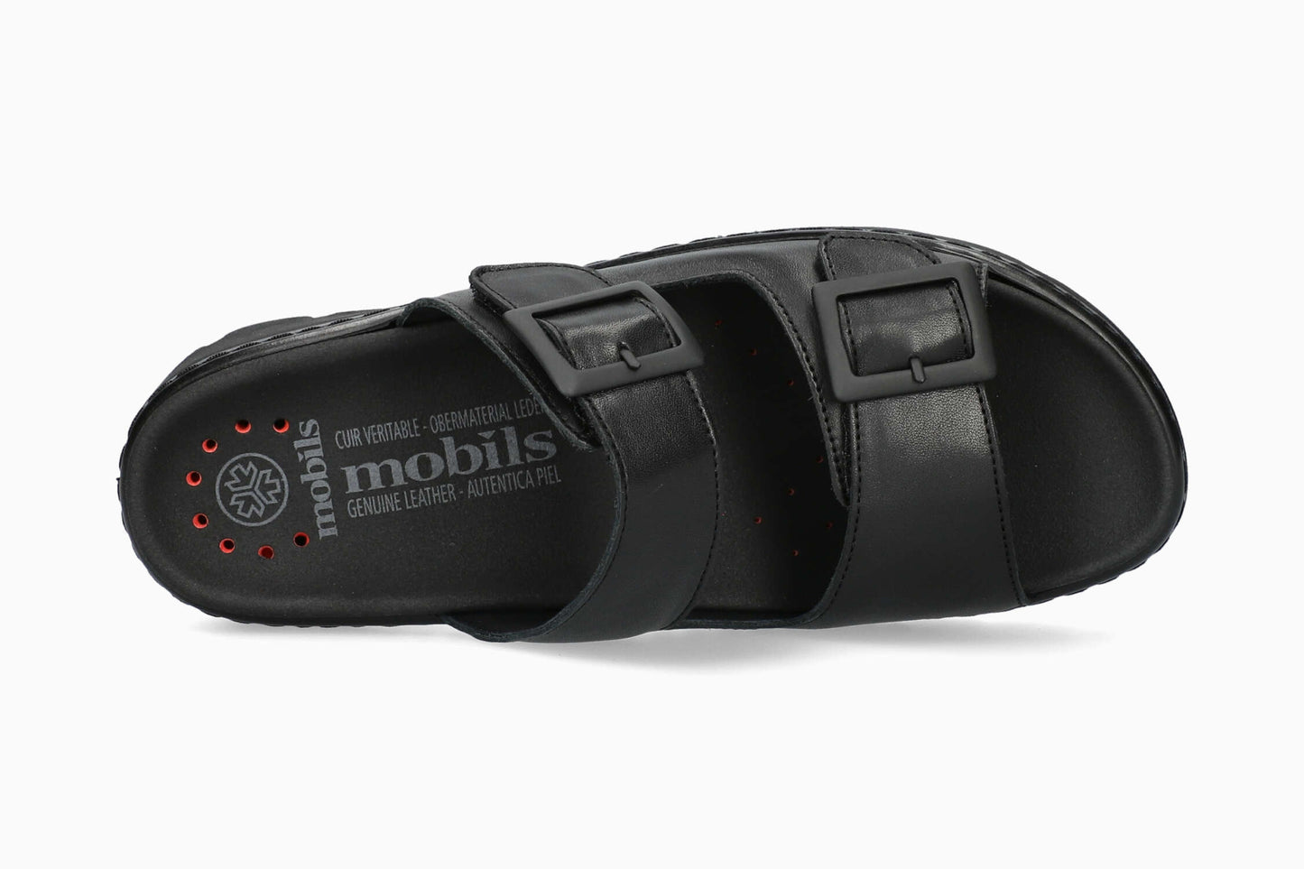 Feminine and trendy, this mule guarantees an ideal fit. The detachable insole, with integrated SOFT-AIR technology, and the outsole, equipped with SHOCK-ABSORBER, minimize impact and guarantee an effortless walk with a spring in your step. Its INTEGRAL CUSHIONING promotes an enhanced sense of well-being. The adjustable adhesive straps, with decorative buckles, ensure perfect comfort and an exceptional fit. The leather lining creates a healthy climate inside the shoe.