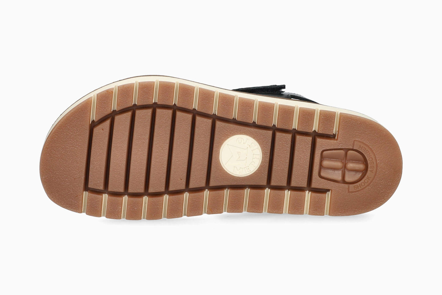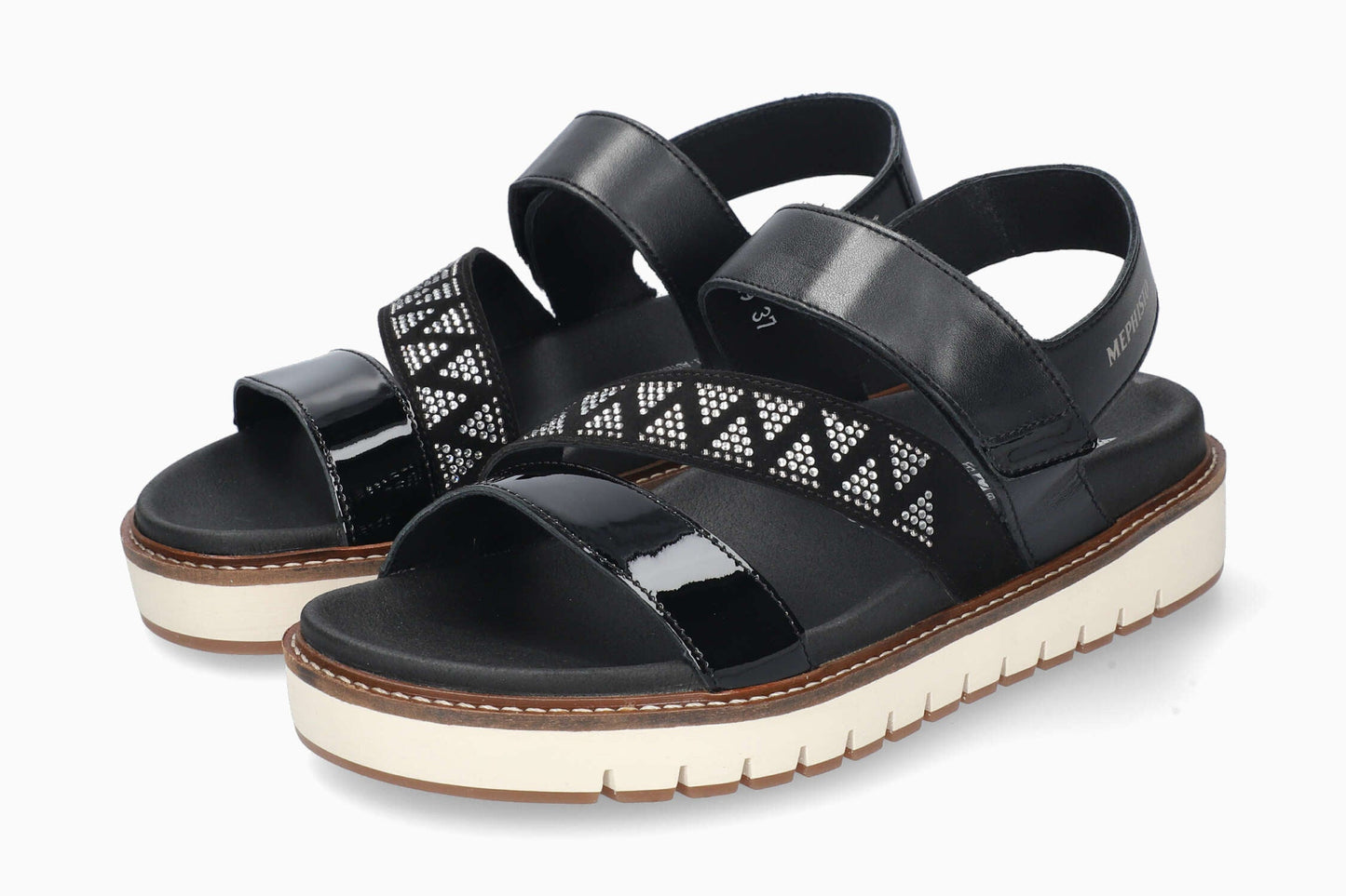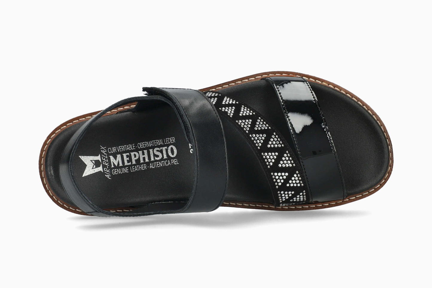 This lightweight sandal is a treasure trove of femininity, thanks to its rhinestones which give it a very dressy look. The SOFT-AIR midsole and the SHOCK-ABSORBER, integrated in the outsole, minimize impact for a gentle, effortless walk. The AIR-RELAX technology respects the anatomy of the foot to prevent fallen arches. The adjustable adhesive strap ensures an excellent fit. Its leather lining promotes a healthy climate inside the shoe.