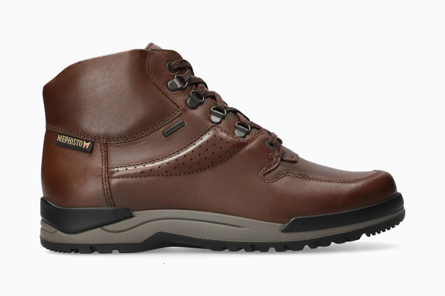 Robust and comfortable, this high-top walking shoe guarantees a perfect fit and optimal comfort. The detachable insole, with integrated SOFT-AIR technology, and the outsole, equipped with SHOCK-ABSORBER, minimise impact and guarantee an effortless walk with a spring in your step. The AIR-RELAX technology respects the anatomy of the foot to prevent fallen arches. Its precise lacing system ensures that your foot will be supported to perfection. Lined with MEPHI-TEX, this shoe offers full foot breathability and durable waterproofing.