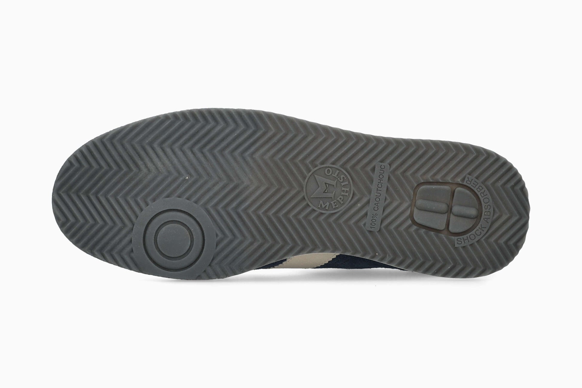 This sporty sneaker combines elegance and comfort. The SOFT-AIR midsole and SHOCK-ABSORBER help to reduce shock to a minimum for a smooth, fatigue-free ride. AIR-RELAX technology respects the anatomy of the foot to prevent arch collapse. This lace-up shoe offers optimum comfort and an excellent fit. The genuine leather lining guarantees a high standard of quality and comfort. This blue men's model is made from suede leather over the whole foot, with inserts in smooth grained leather.
