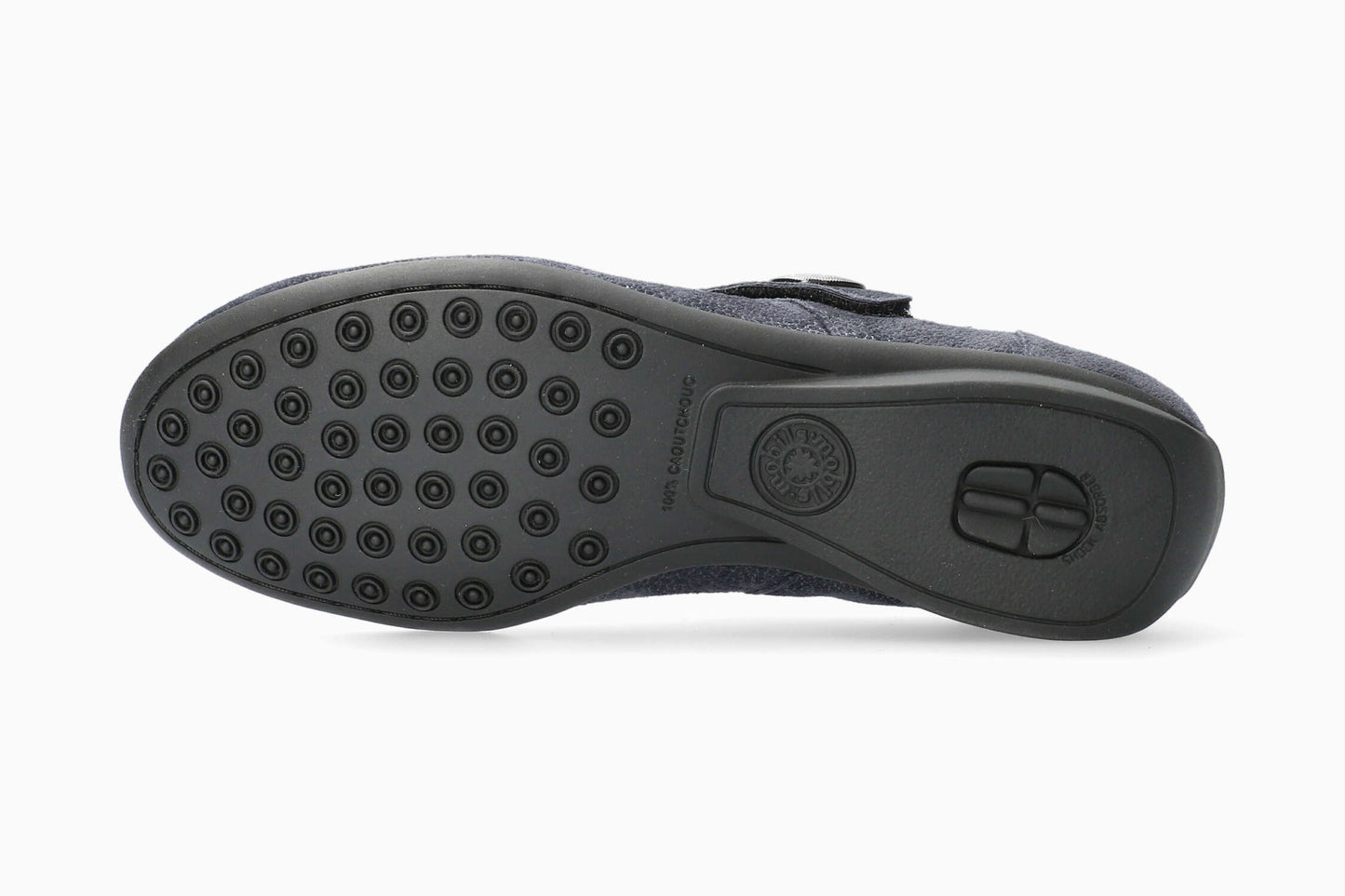 This perforated ballerina shoe, classic and feminine with a flexible rubber sole, exudes a timeless elegance. The detachable insole, with integrated SOFT-AIR Technology, and the SHOCK-ABSORBER, in the outsole, help to minimise impact, for a gentle, effortless walk. Its INTEGRAL CUSHIONING ensures an exceptional fit. The wide fastening strap with velcro is embellished with a little ornament. The leather lining ensures good foot hygiene.