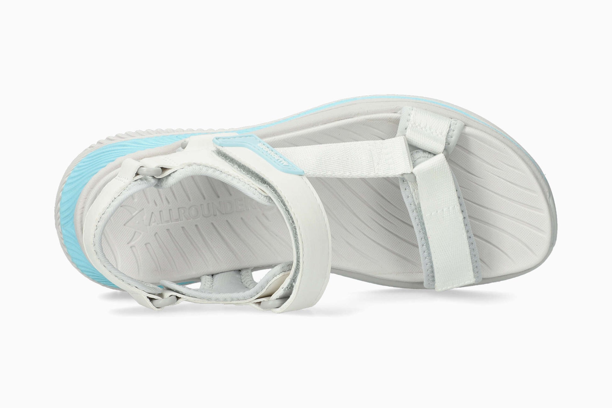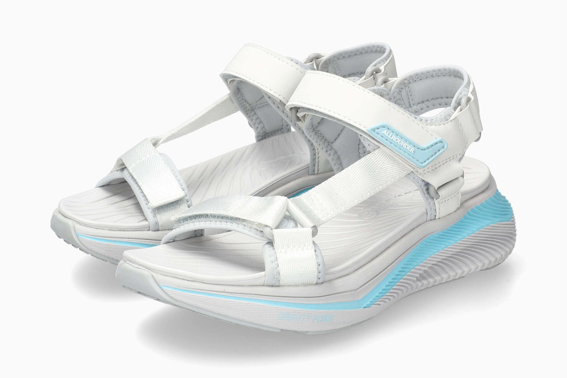 FAR AWAY model by ALLROUNDER: This lightweight sandal stands out for its design and attractive colors. The EVA midsole guarantees excellent comfort. Simply adjust the 2 hook-and-loop straps for optimum support. The perfect sandal for your next casual vacation. This women's sandal in beautiful white and blue stands out above all for its practical, lightweight design.