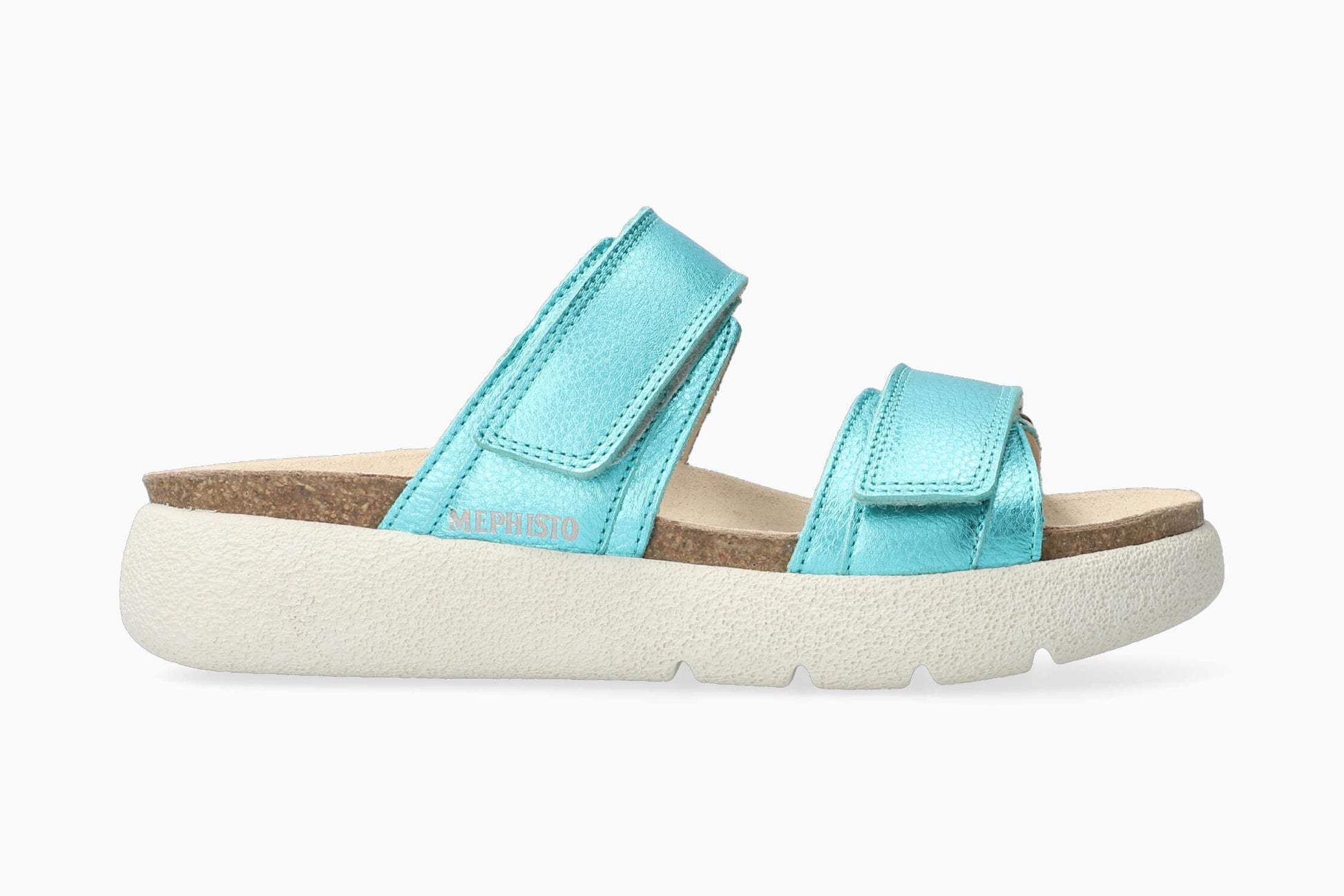 This women's sandal has a casual look and a great feel. The SOFT-AIR cork midsole and SHOCK-ABSORBER integrated into the outsole reduce shock to a minimum for a smooth, fatigue-free walk. AIR-RELAX technology respects the anatomy of the foot to prevent arch collapse. Self-gripping instep straps ensure an ideal fit.