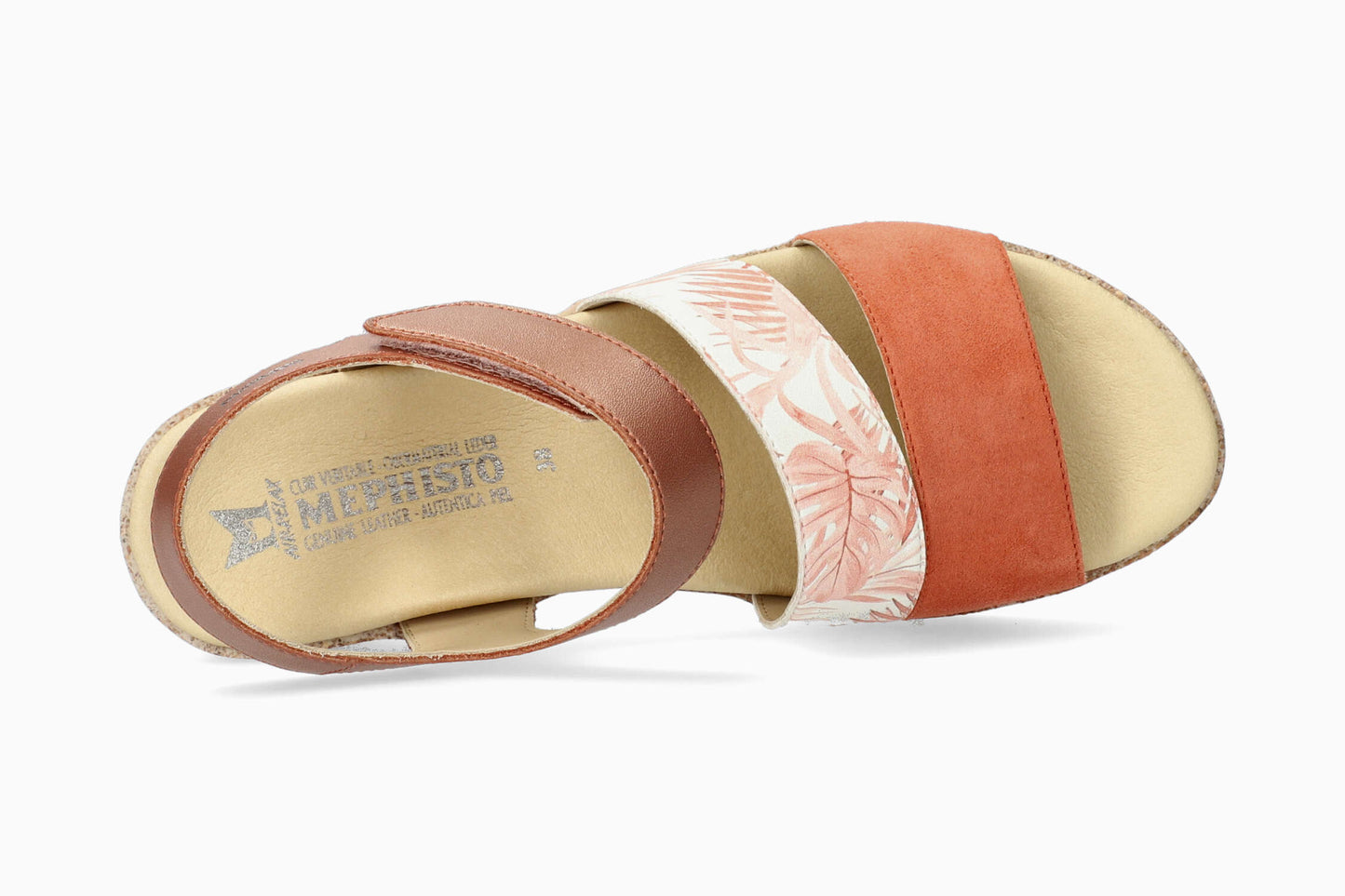 Feminine and fashionable, this wedge heel sandal is a summer essential. Enjoy unparalleled comfort, thanks to the SHOCK-ABSORBER in the outsole and its SOFT-AIR cork foot-bed, which help to reduce impact from walking. The adjustable adhesive strap ensures perfect adjustment and comfort. Its lining, in real leather and textile, guarantees superior quality and comfort.