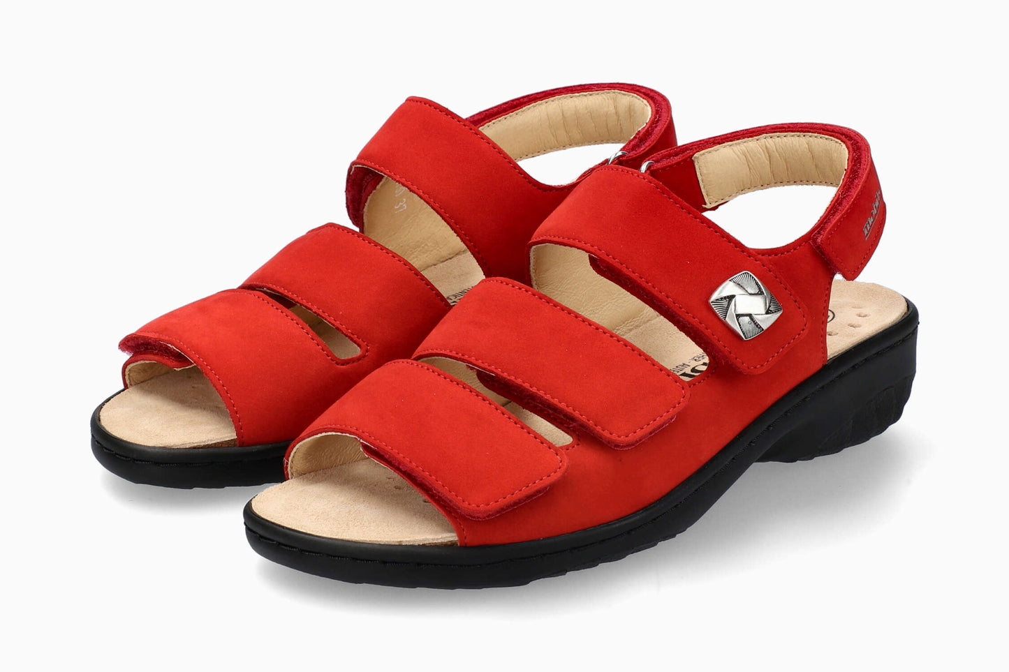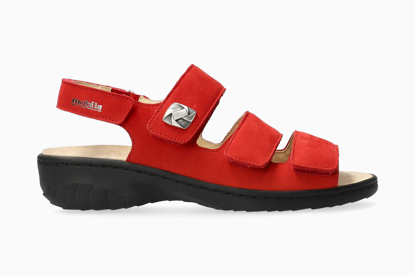 Easy to slip on and very comfortable, this sandal will satisfy all your daily needs. The SHOCK-ABSORBER, in the outsole, and the detachable insole, with integrated SOFT-AIR Technology, help to minimise impact for a gentle, effortless walk. Its INTEGRAL CUSHIONING ensures an exceptional fit. This sandal with adhesive band straps is embellished with a small ornament on the strap. Its real leather lining guarantees superior quality and comfort.