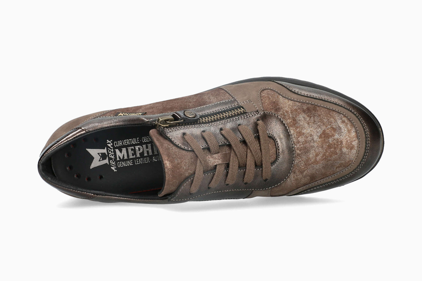 This lightweight shoe, with its sporty look, will win you over with its unparalleled comfort. The detachable insole, with integrated SOFT-AIR Technology, and the SHOCK-ABSORBER, in the outsole, minimise impact for an effortless walk with a spring in your step. The AIR-RELAX technology respects the anatomy of the foot to prevent fallen arches. In addition to the lacing, a side zip fastening allows you to slip into the shoe with effortless ease. The leather lining ensures good foot hygiene.