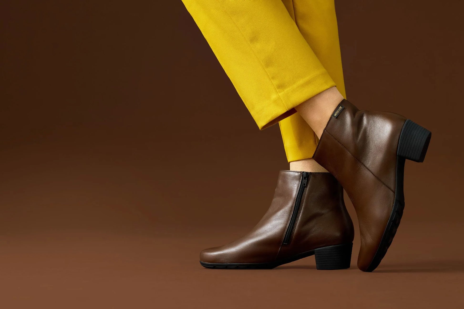 This classically styled ankle boot is the ideal shoe for the wet weather typical of autumn and winter months. The removable insole features SOFT-AIR Technology for a smooth, fatigue-free ride. This outsole with heel features GOWING Technology in the forefoot area for excellent cushioning. The side zip not only makes them easy to put on, but also adds a decorative touch. In cold weather, the soft, warm lining provides thermal comfort for your feet. This brown women's ankle boot is made from smooth leather.