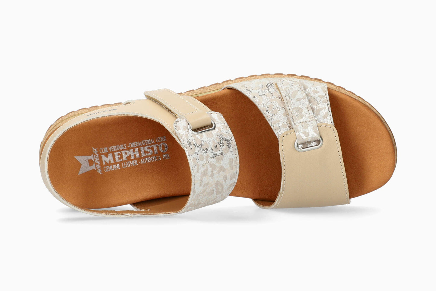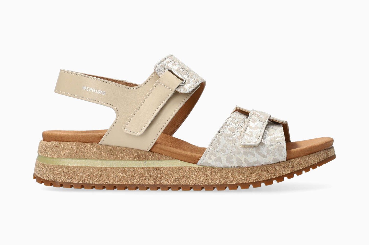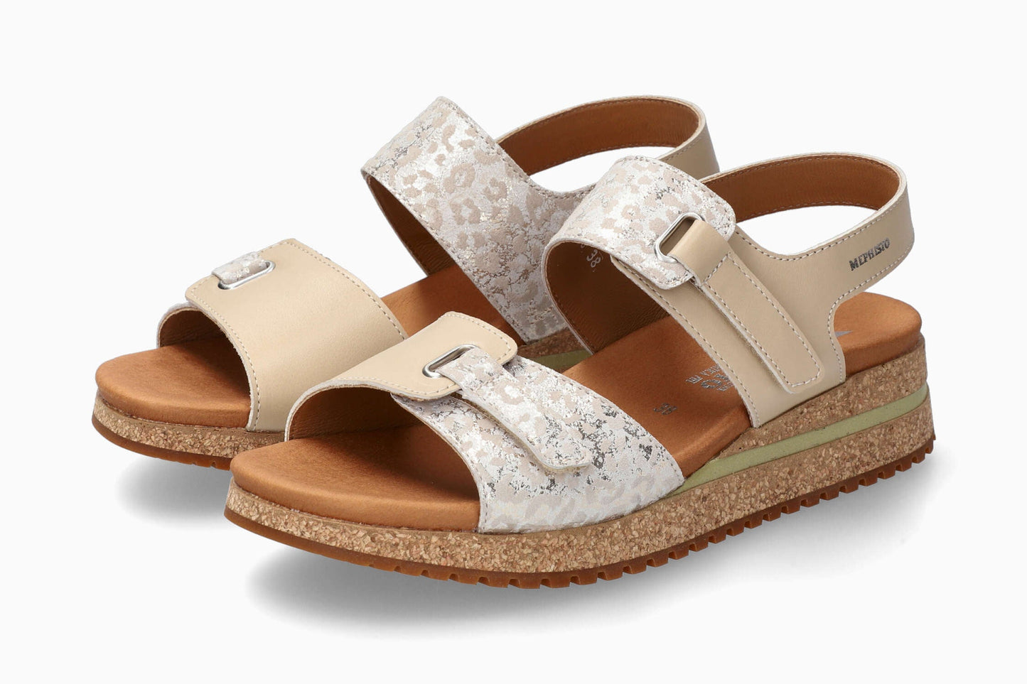 This sandal, with its sporty, feminine allure, sets itself apart with its platform design. The SOFT-AIR midsole and the SHOCK-ABSORBER, integrated in the outsole, minimise impact for a gentle, effortless walk. The AIR-RELAX technology respects the anatomy of the foot to prevent fallen arches. The adjustable adhesive straps ensure a perfect fit. Its lining is leather, with a touch of textile for extra comfort.