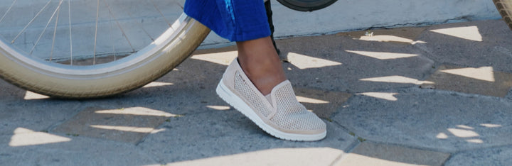 This slip-on with a feminine look seduces with its incomparable comfort. The SHOCK-ABSORBER, in the outsole, and the detachable insole, with integrated SOFT-AIR Technology, help to minimise impact for a gentle, effortless walk. The AIR-RELAX technology respects the anatomy of the foot to prevent fallen arches. Slip-on with elasticated sides for perfect foot support.