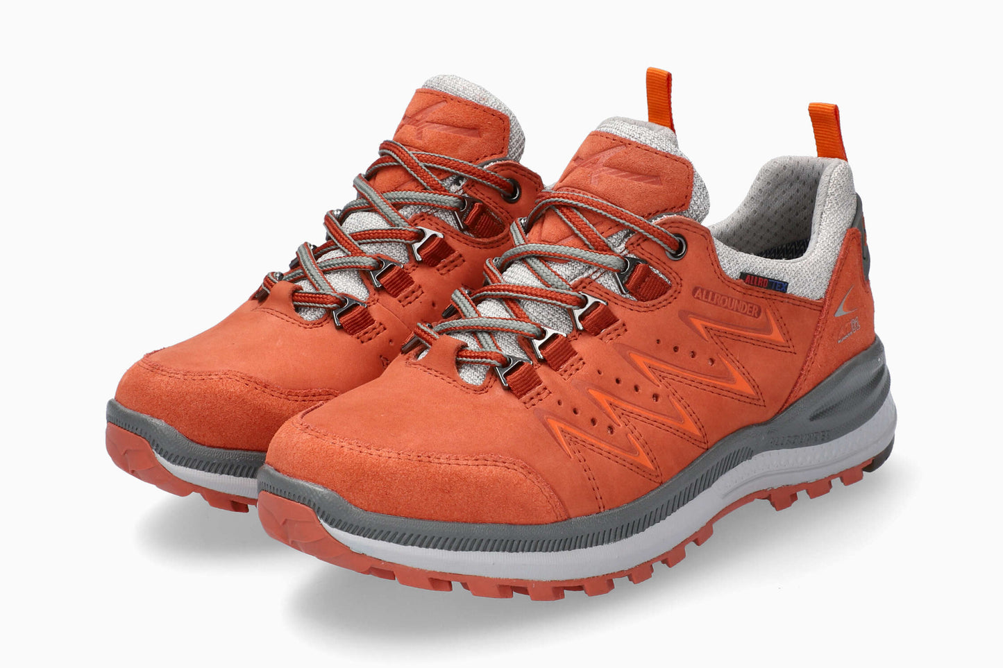 Outdoor shoe providing excellent grip, cushioning and stability. A shoe for everyday use, leisure and adventure. The sole, with three-dimensional treads, guarantees an excellent grip on all surfaces. The detachable insole, with integrated ACTIVE SUSPENSION Technology, and the SHOCK-ABSORBER, in the outsole, are features which help in equal measure to reduce impact from walking, whilst ensuring a healthy climate inside the shoe. The little bonus? The ALLRO-TEX technology keeps your feet dry - no more sweaty feet! The laces ensure optimum comfort and an excellent fit.