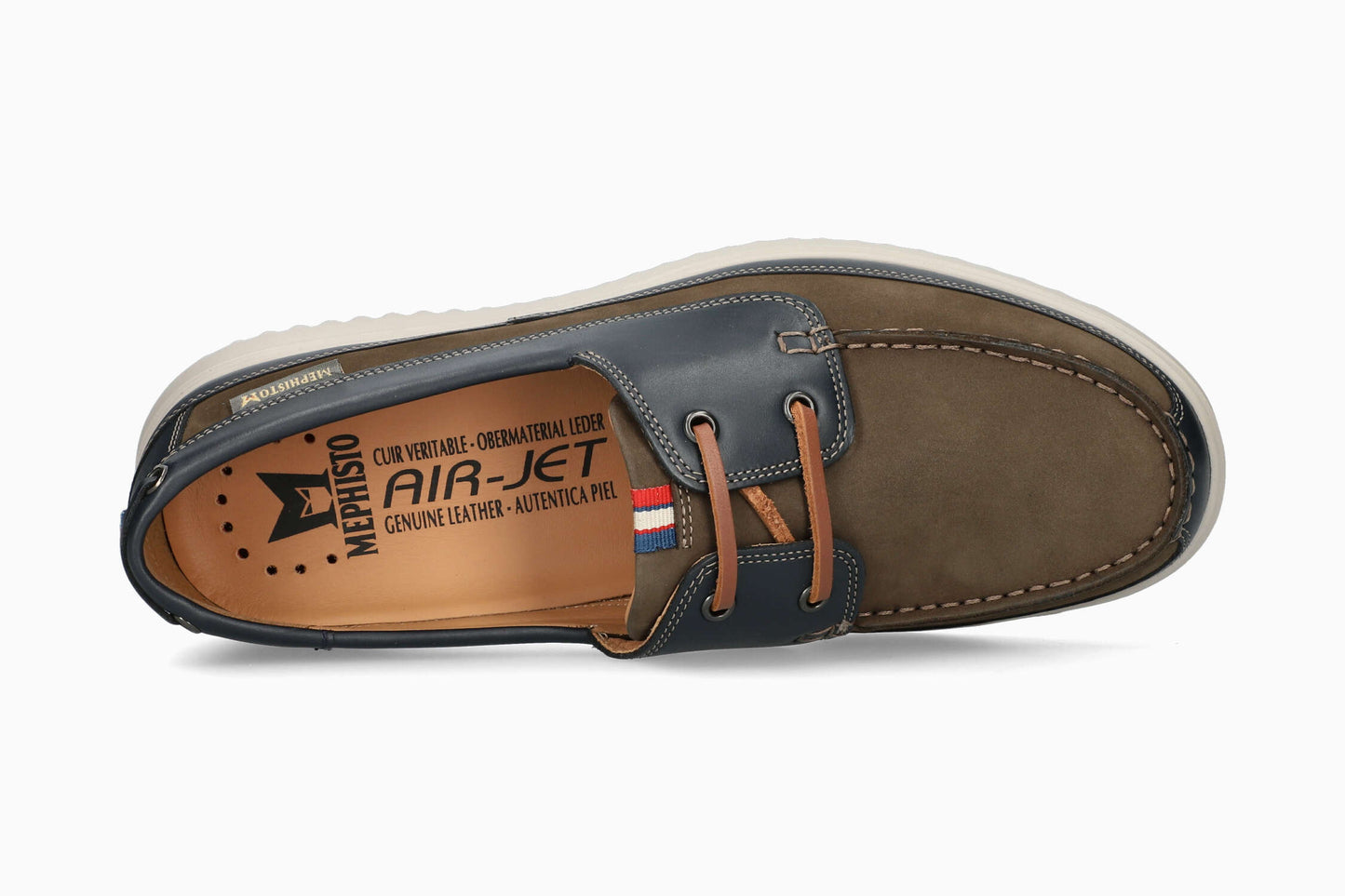 Whether you're spending a day on (or near) the water, or just strolling the city streets, the Trevis offers timeless style blended with casual sophistication – and more than a touch of nautical charm. This shoe combines the best qualities of a sneaker and a boat-style shoe for a look that’s both timeless and timely, elevating any outfit with its undeniable head-turning craftsmanship. The rich, supple full-grain leather provides beauty, durability, and unmatched comfort. Combine that with our industry-exclusive SOFT-AIR insoles wrapping your feet in all-day/everyday luxury and impact-absorbing outsoles soaking up the strides, you’ll be inventing excuses to slip them on. This green boat shoe for men is made from nubuck leather and smooth leather.