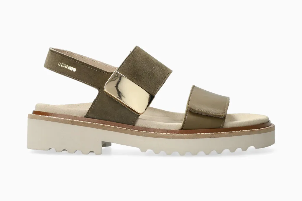 This sandal can be adapted to suit all styles and tastes. The SOFT-AIR midsole and SHOCK-ABSORBER integrated into the outsole reduce shock to a minimum for a smooth, fatigue-free walk. AIR-RELAX technology respects the anatomy of the foot to prevent arch collapse. The Violaine combines comfort with a perfect fit thanks to adjustable hook-and-loop straps, one of which is embellished with a metallic ornament for a touch of fantasy. The leather lining ensures a healthy climate inside the shoe.