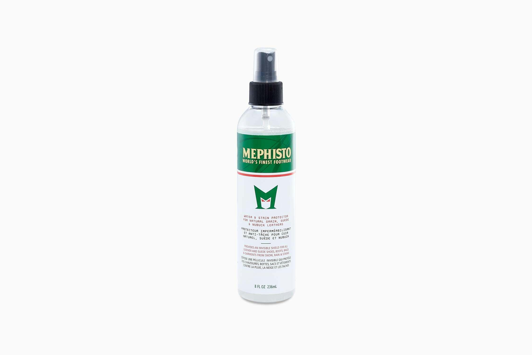 Mephisto Water and Stain Protector provides an invisible shield for all leather and suede shoes, boots, bags & garments from snow, rain & stains. Use on natural grain, suede and nubuck leathers. 8 oz. pump spray bottle.