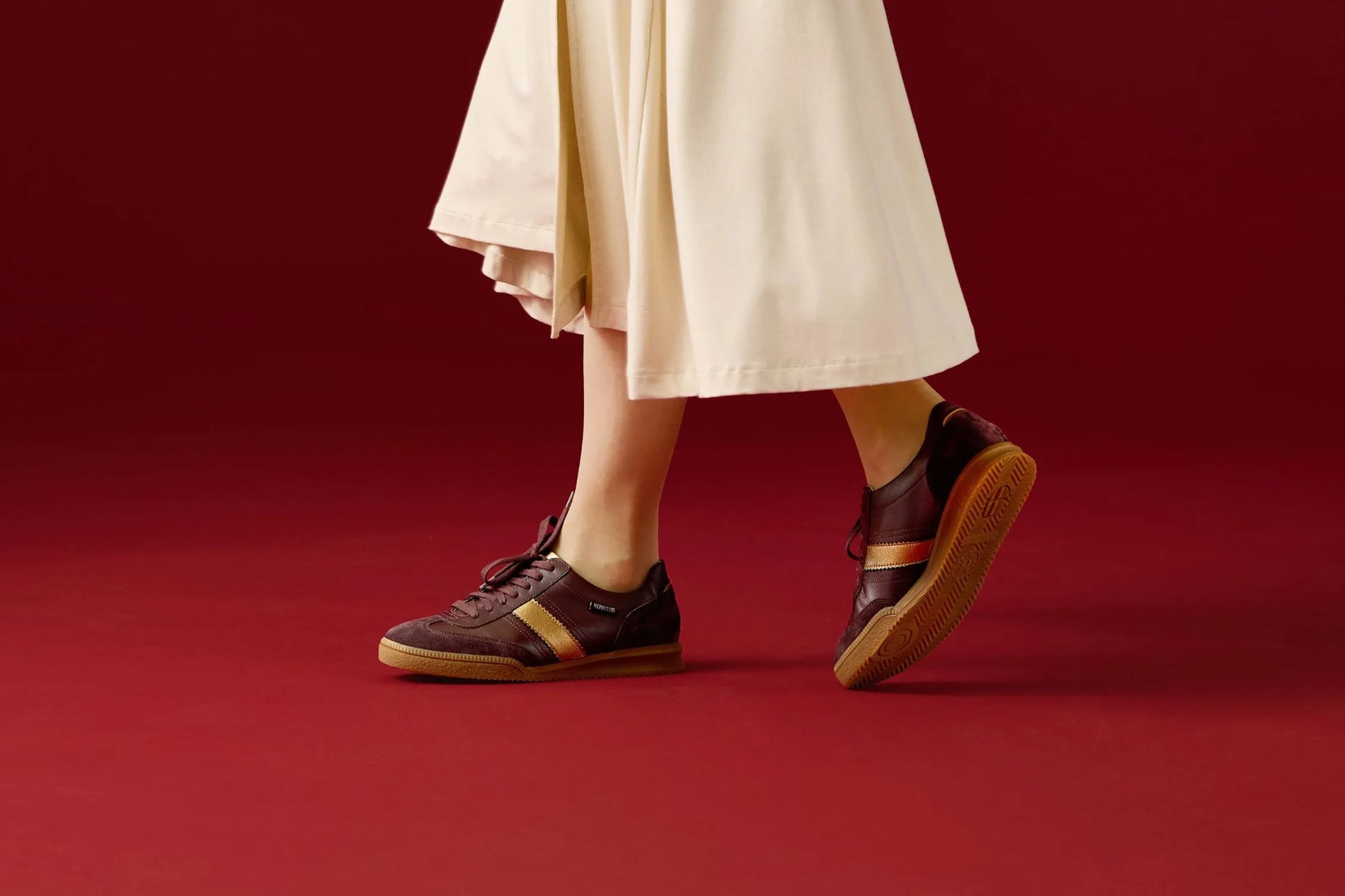 This sneaker has a sporty design with a very successful cut, offering an elegant and original look. The SOFT-AIR midsole and SHOCK-ABSORBER integrated into the outsole reduce shock to a minimum for a smooth, fatigue-free walk. AIR-RELAX technology respects the anatomy of the foot to prevent arch collapse. This lace-up sneaker has a leather lining, a high-grip outsole and excellent cushioning. The leather lining provides a healthy climate inside the shoe. This purple women's model is made from smooth leather all over the foot, with inserts in suede leather and crinkled shiny metallic-effect leather.
